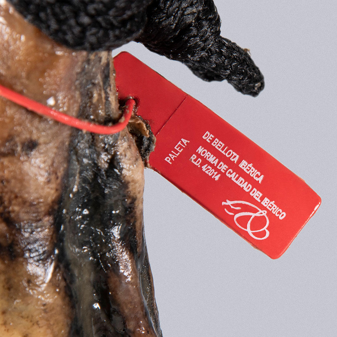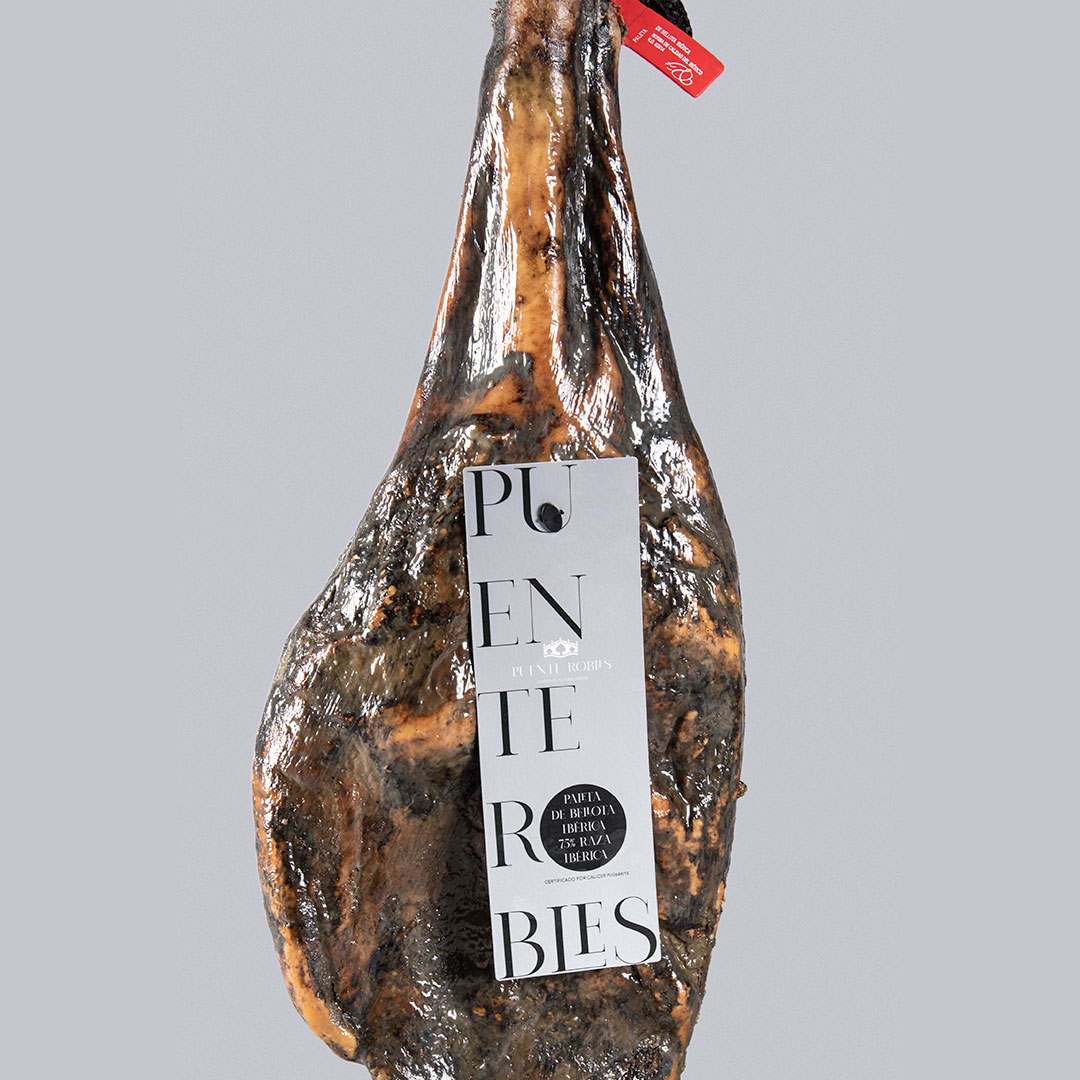 Spalla iberica 75% alimentata a ghiande ottenuta dalle zampe anteriori di suini iberici di razza pura al 75%.