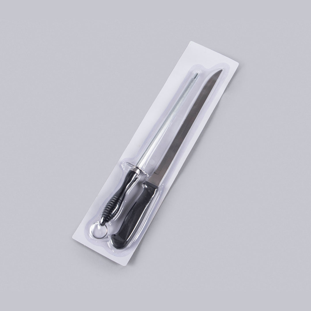 La nostra confezione blister di coltelli e affilatoi per prosciutto vi fornisce tutto il necessario per ottenere tagli precisi e deliziosi.