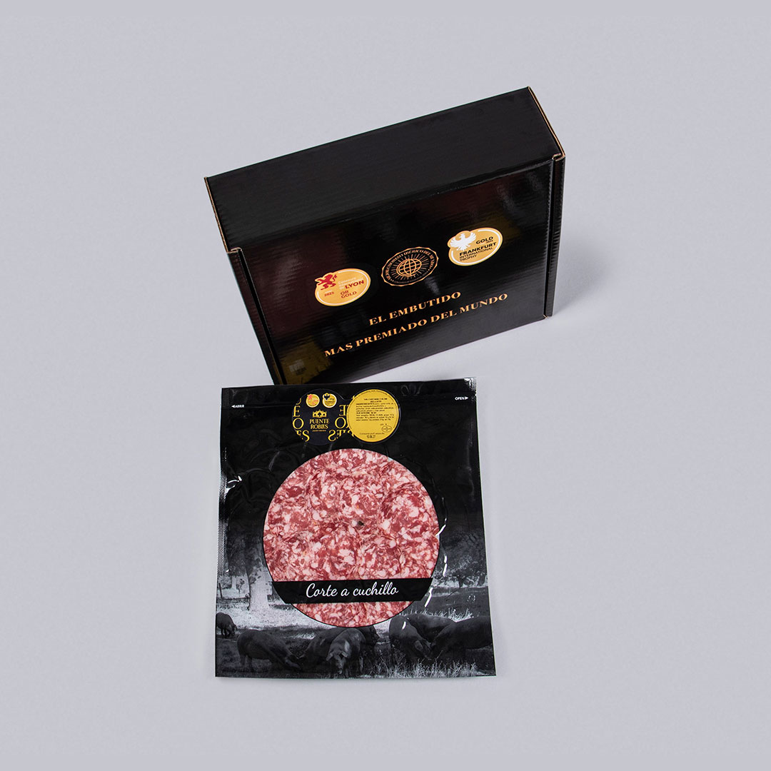 • Confezione da 100 grammi di Chorizo Cular de Bellota, premiato come il migliore al mondo.
